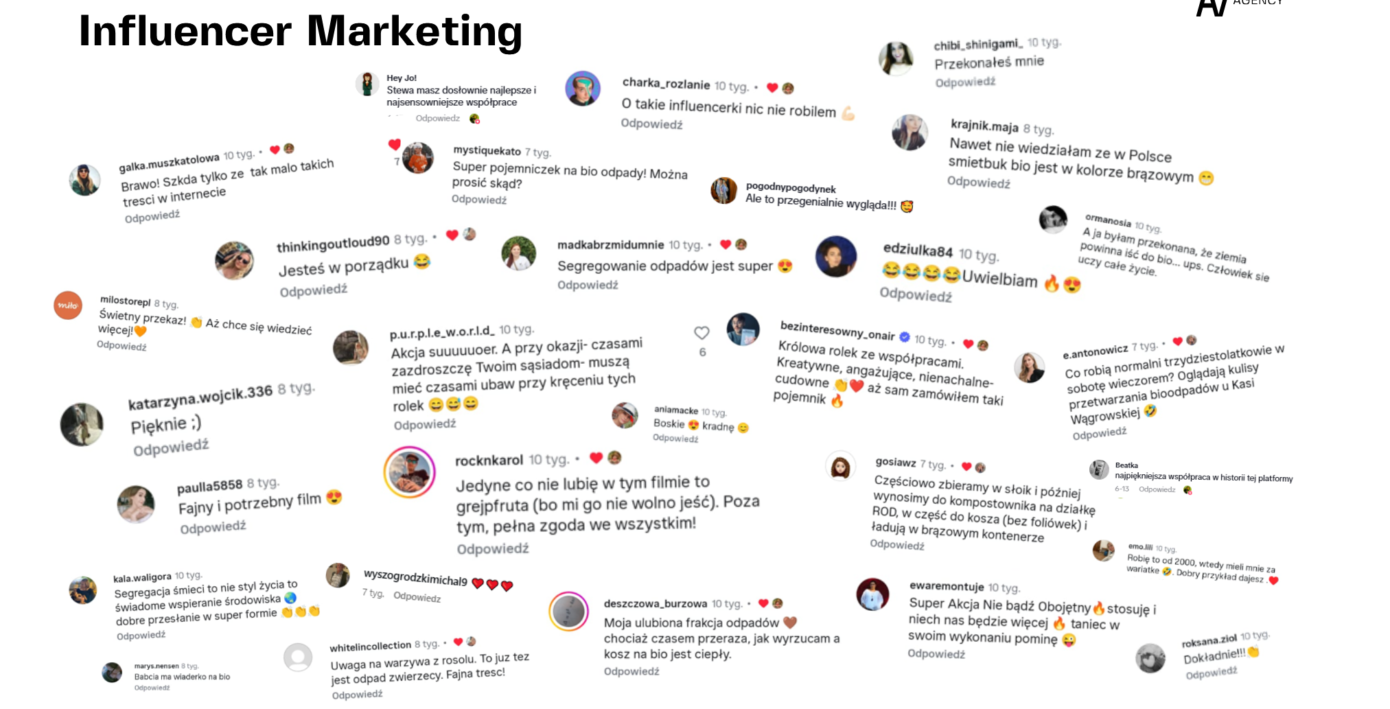 Do współpracy przy promocji kampanii zaprosiliśmy też uznanych twórców internetowych z różnych segmentów (od lifestyle’u, przez ekologię, po gotujących roślinnie), którzy przybliżyli temat segregacji odpadów bio w przystępny sposób. W akcji udział wzięli m.in. Olga Frycz, Dawid Oleszko z Roślinnych historii, Kasia Wągrowska (Ograniczam się), Areta Szpura czy Stewunia. Influencerzy w naturalny i typowy dla siebie sposób wpletli przekaz i hasło „Nie mieszasz, jesteś w porządku” w swoją codzienną komunikację z obserwującymi.