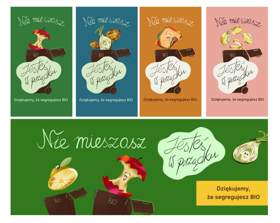 Istotną częścią kampanii społecznej były także plakaty autorstwa ilustratora Karola Banacha, które wyeksponowane zostały w przestrzeni miejskiej w Warszawie. Artysta, który jest znany ze swojej nietypowej kreski, stworzył serię, która miała na celu wprowadzić odbiorców w dobry nastrój, a jednocześnie w prosty i jasny sposób zachęcić do segregacji. Był to spójny element kampanii, która stawiała na pozytywny, oryginalny i zachęcający do interakcji przekaz.