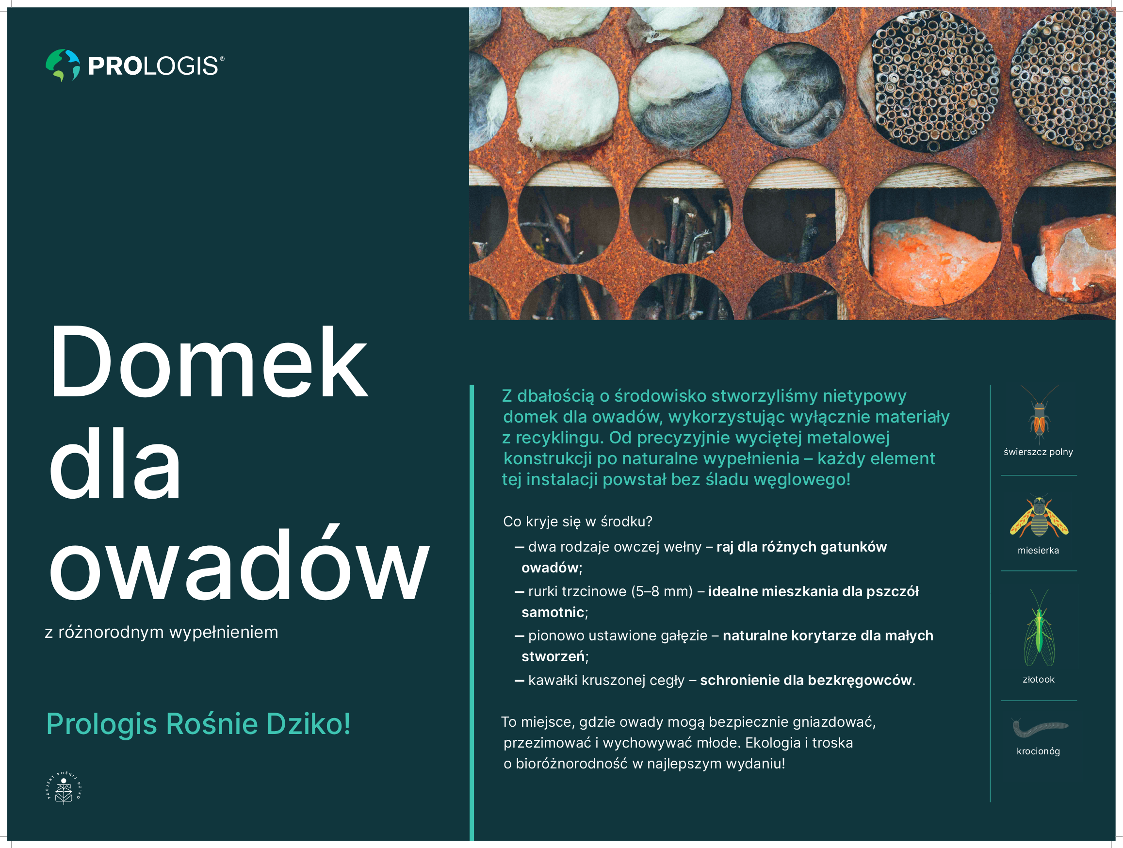 Prologis Polska jako część globalnego lidera w sektorze nieruchomości logistycznych, realizuje działania środowiskowe i społeczne zgodne z polityką całej firmy. W ramach wspierania różnorodności biologicznej firma zdecydowała się na wdrożenie innowacyjnego projektu „Rośnij Dziko” w Prologis Park Wrocław III.
